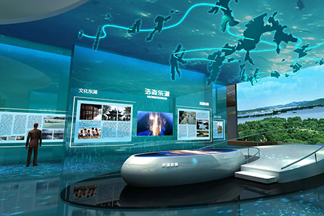 MORE >>互動滑軌屏又稱滑軌電視,它將相對枯燥的文字信息展示在視頻上,減輕了解說員滿場解說的負擔(dān),參觀者能夠一目了然的了解產(chǎn)品信息。